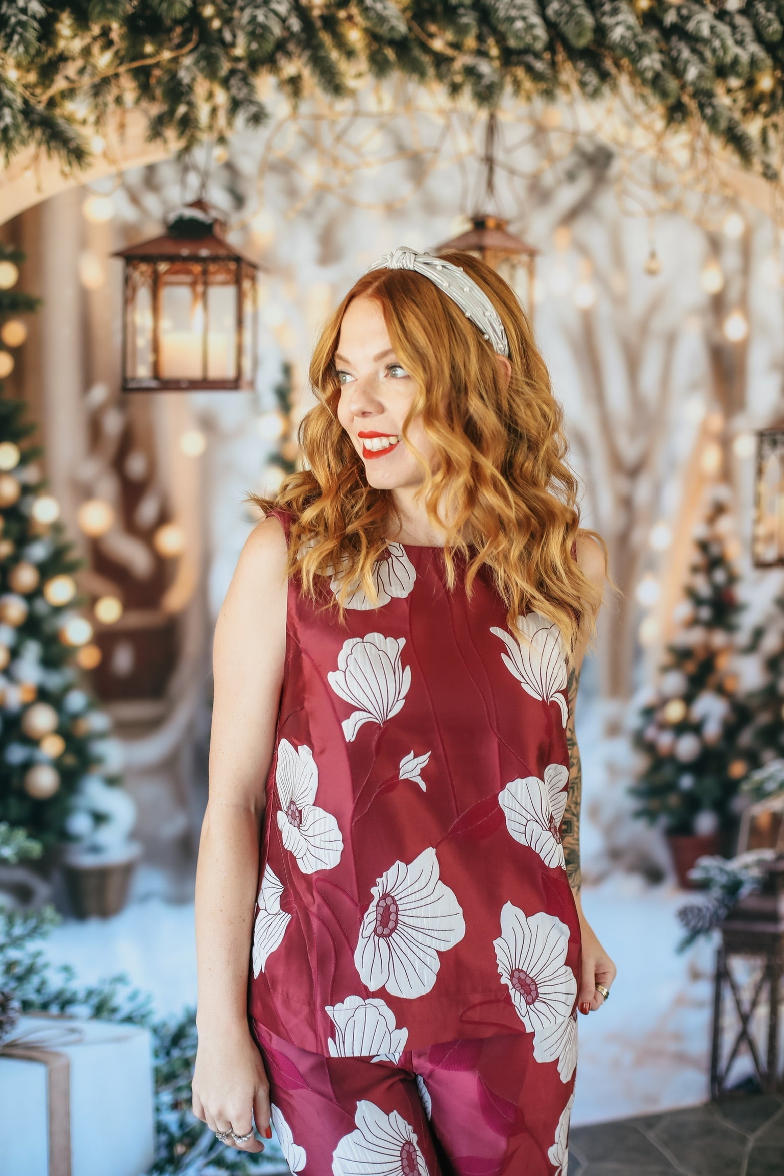 Vibrant ruby floral pattern for a feminine, professional touch