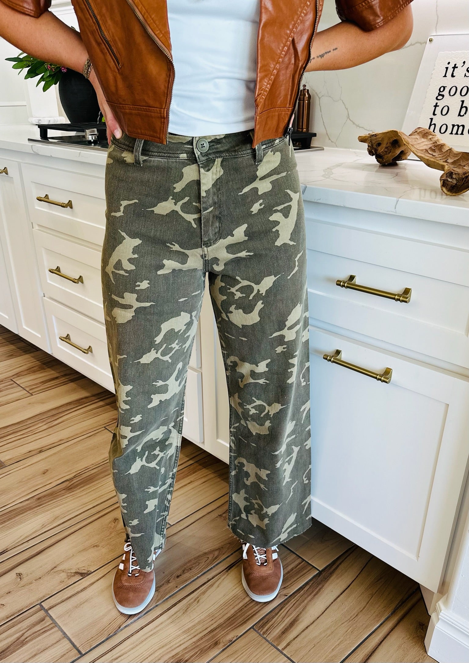 Laid-back comfort meets everyday versatility in these Camouflage Stretch Pants. Featuring a relaxed wide-leg silhouette, they’re crafted from a soft cotton-spandex blend that delivers breathable comfort with just the right amount of stretch. Whether you’re running errands, traveling, or enjoying a casual weekend, these pants keep you comfortable without compromising on style. Pair them with tees, sweaters, or jackets for effortless, on-trend looks year-round.