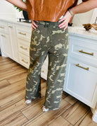 CAMOUFLAGE WIDE LEG-STRETCH PANTS