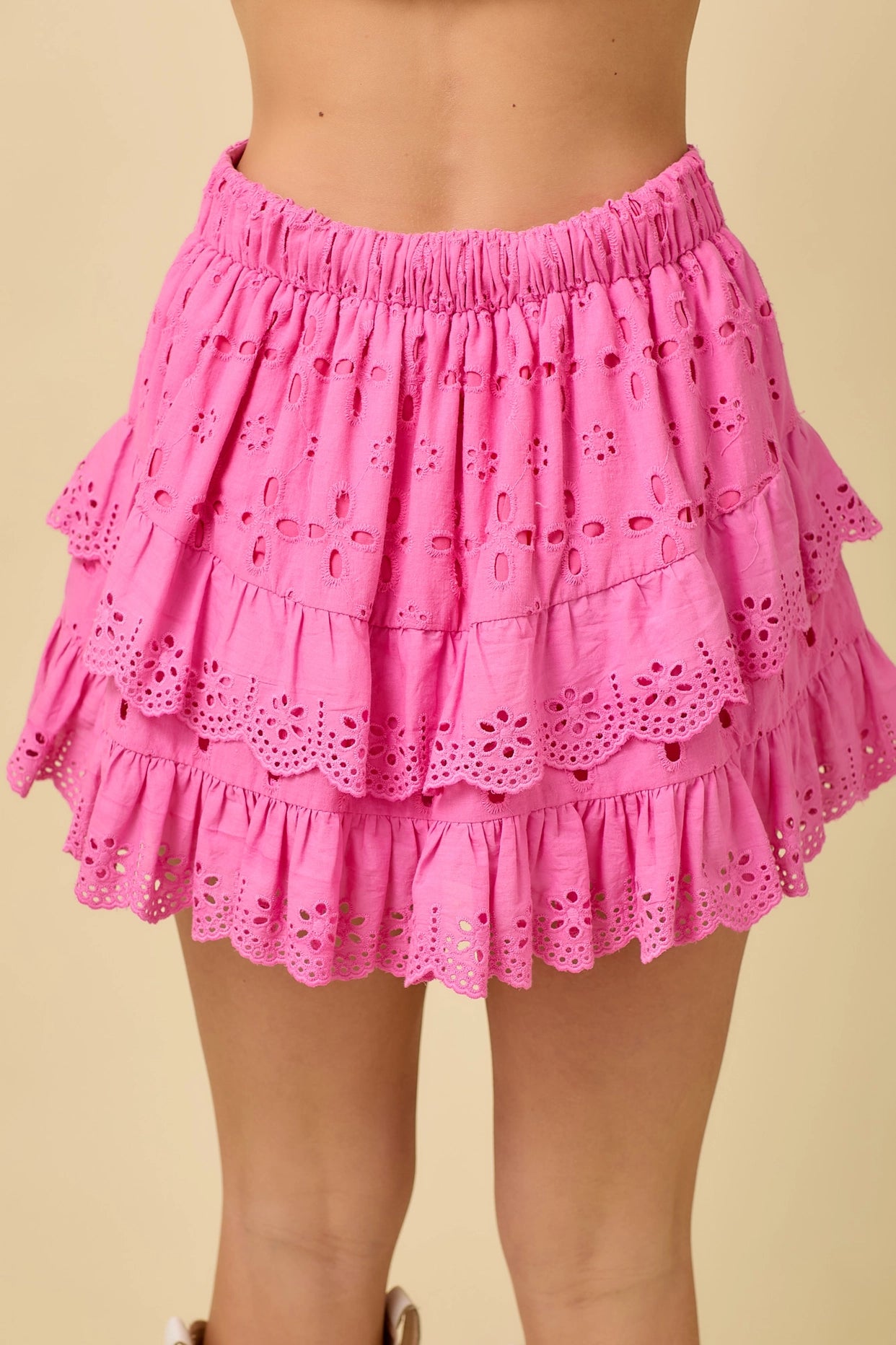 HOT PINK EYELET RUFFLE MINI SKIRT- PERFECT FOR RUSH