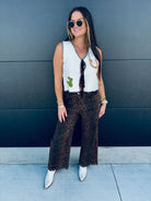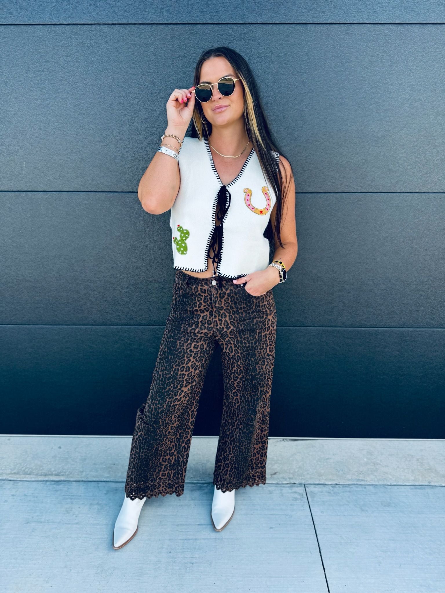 ✔️ Why You’ll Love Them: These jeans aren’t just bold—they’re versatile. The timeless straight leg cut balances the daring leopard pattern, making them easy to style for any occasion while the scallop detailing sets them apart from every pair in your closet.