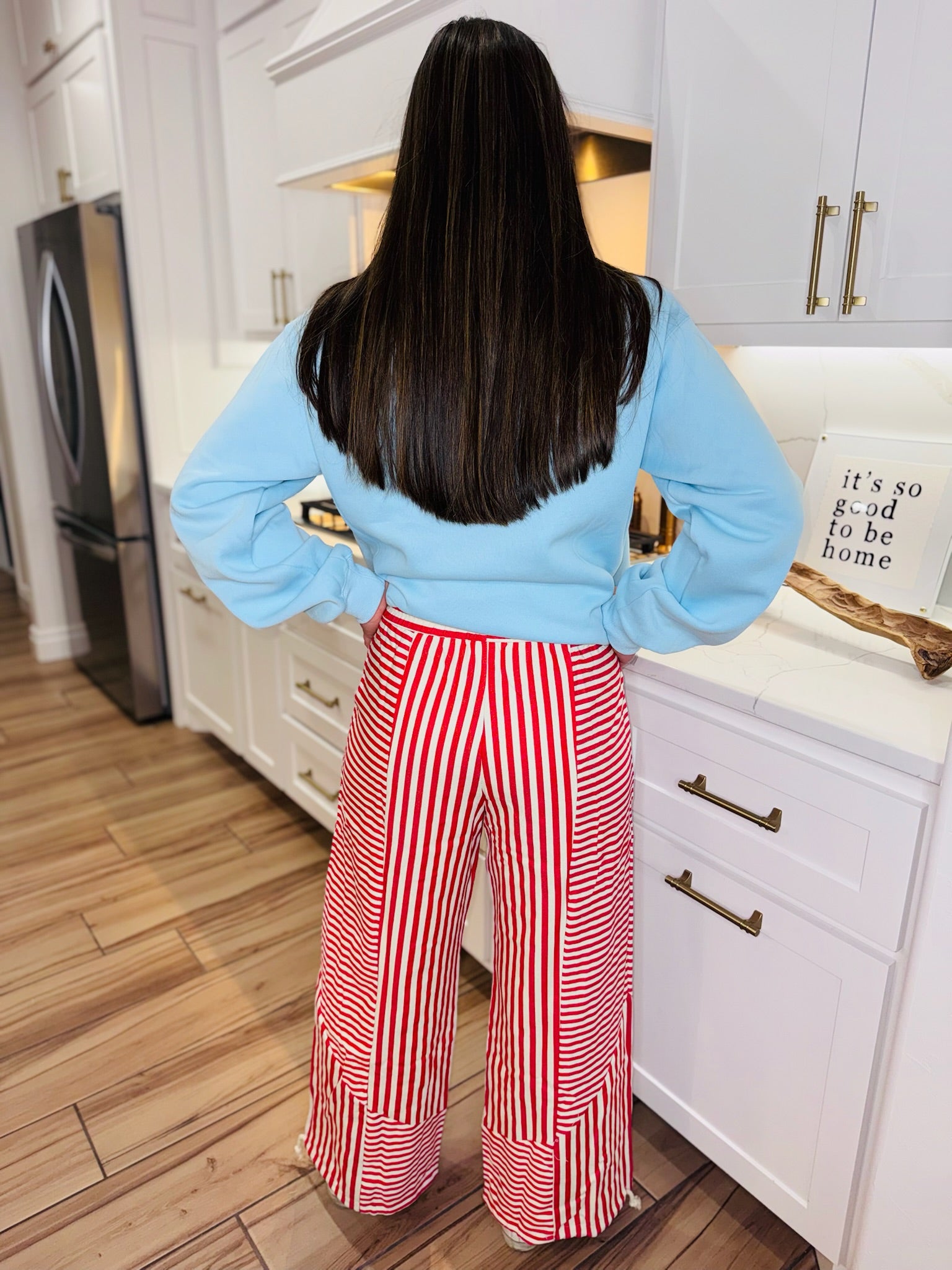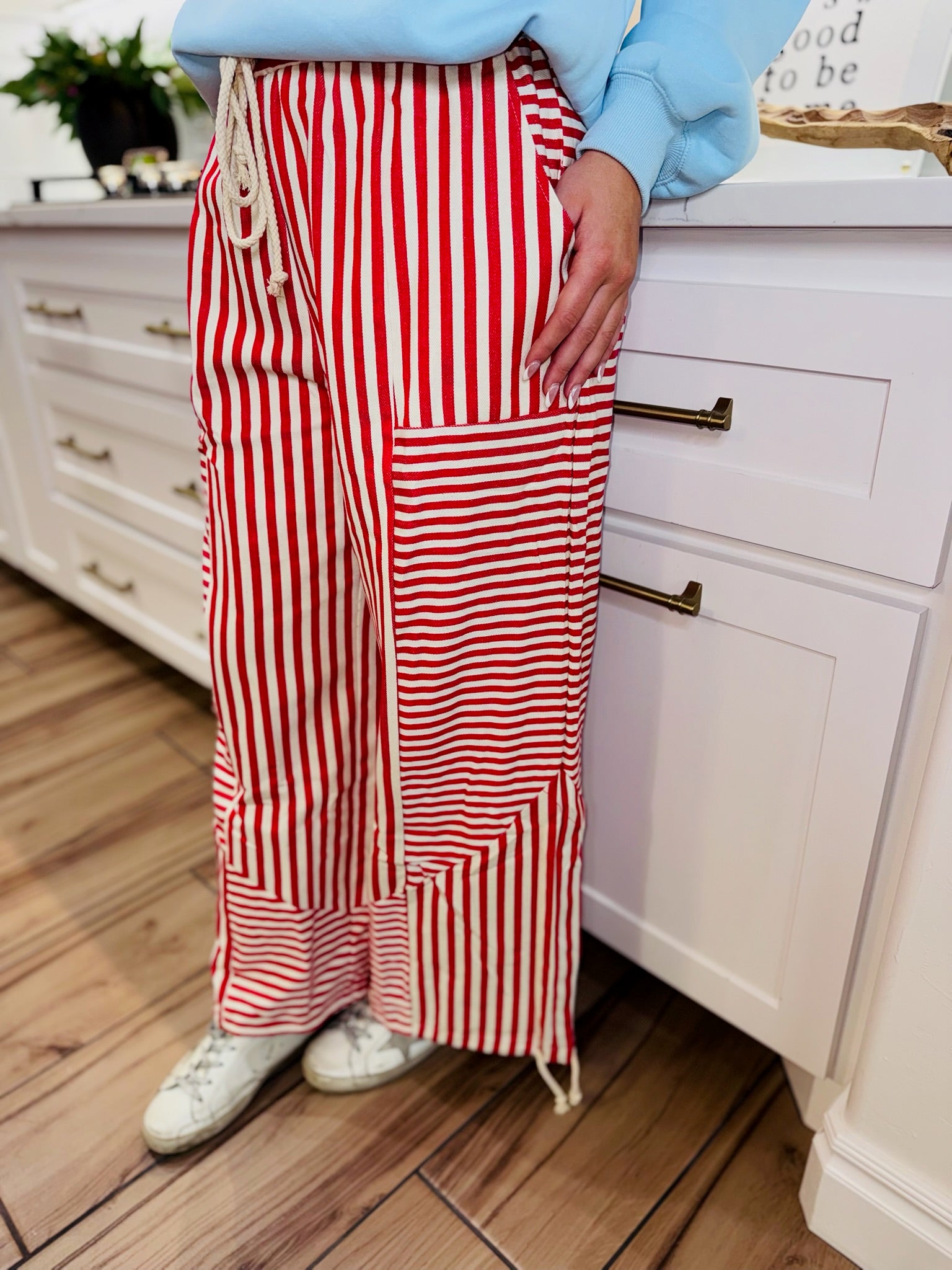 Elevated comfort meets effortless style in these berry red striped pants. Designed with a soft, stretchy waistband and a flowy silhouette, they’re the perfect blend of chic and easygoing. Dress them up with a sleek blouse or keep it casual with a simple tee — these pants move with you all day.
