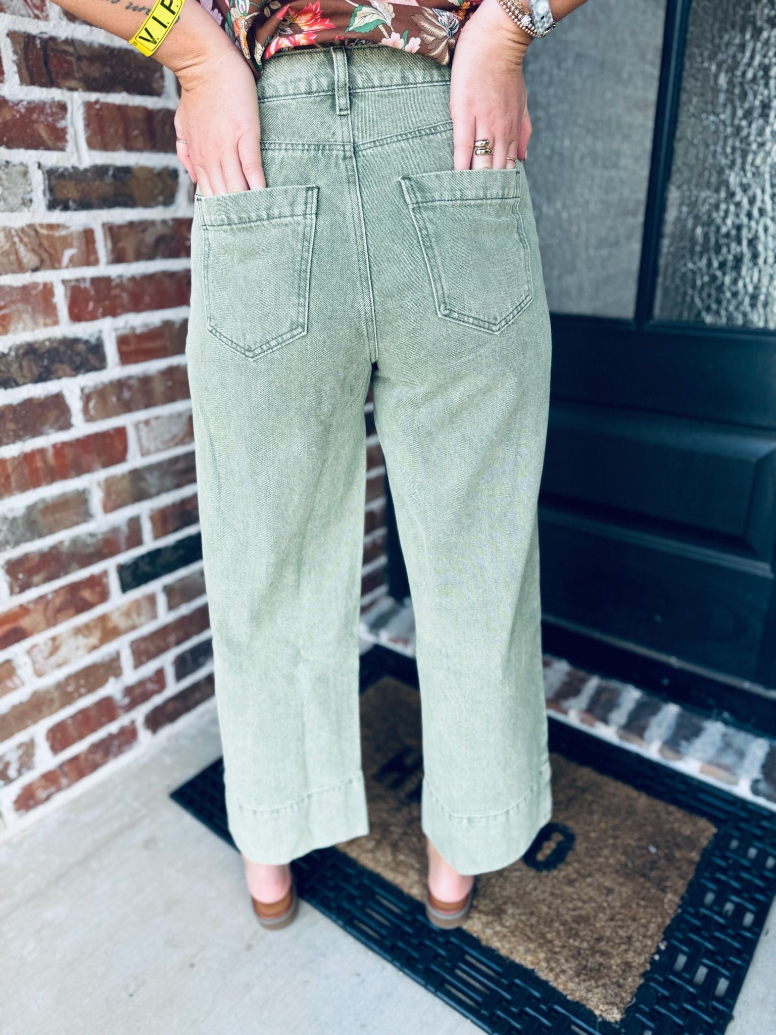 Whether you’re dressing up for a night out or keeping it casual for the weekend, these straight leg olive jeans bring versatile sophistication to your wardrobe. Style with sneakers for an easy daytime look or heels for an elevated finish.