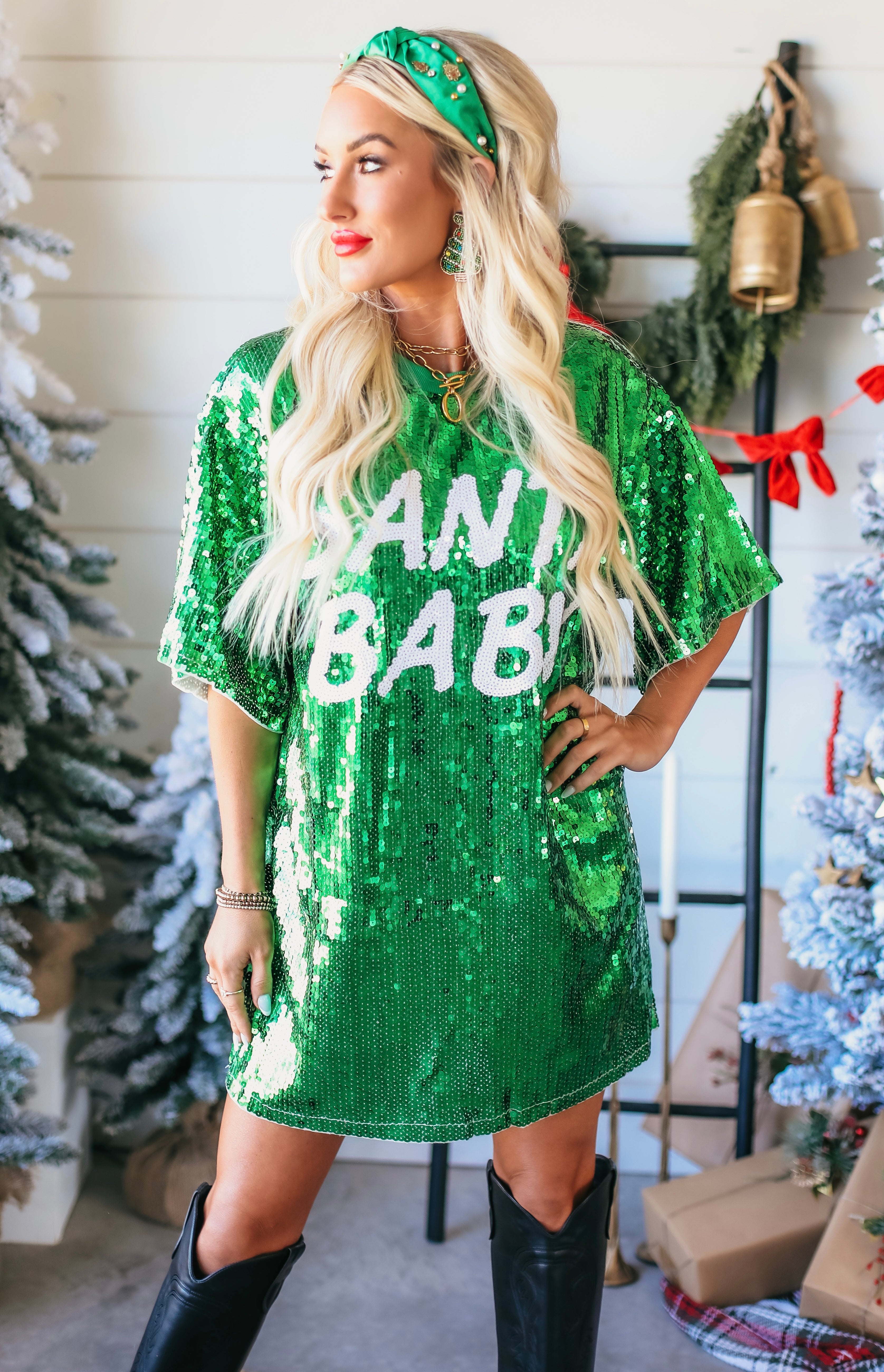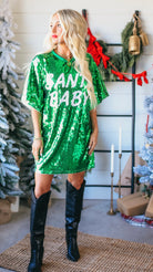 SANTA BABY GREEN SEQUIN OVERSIZED DRESS