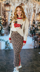 The relaxed fit and lightweight feel make it ideal for layering with jeans, leggings, or your favorite skirt. Whether you’re wrapping presents, attending a holiday party, or lounging by the fire, this sweater keeps you warm and stylish all season long.