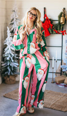 PEACH LOVE STRIPE SANTA PRINTED PAJAMA PANT SET- PINK AND GREEN