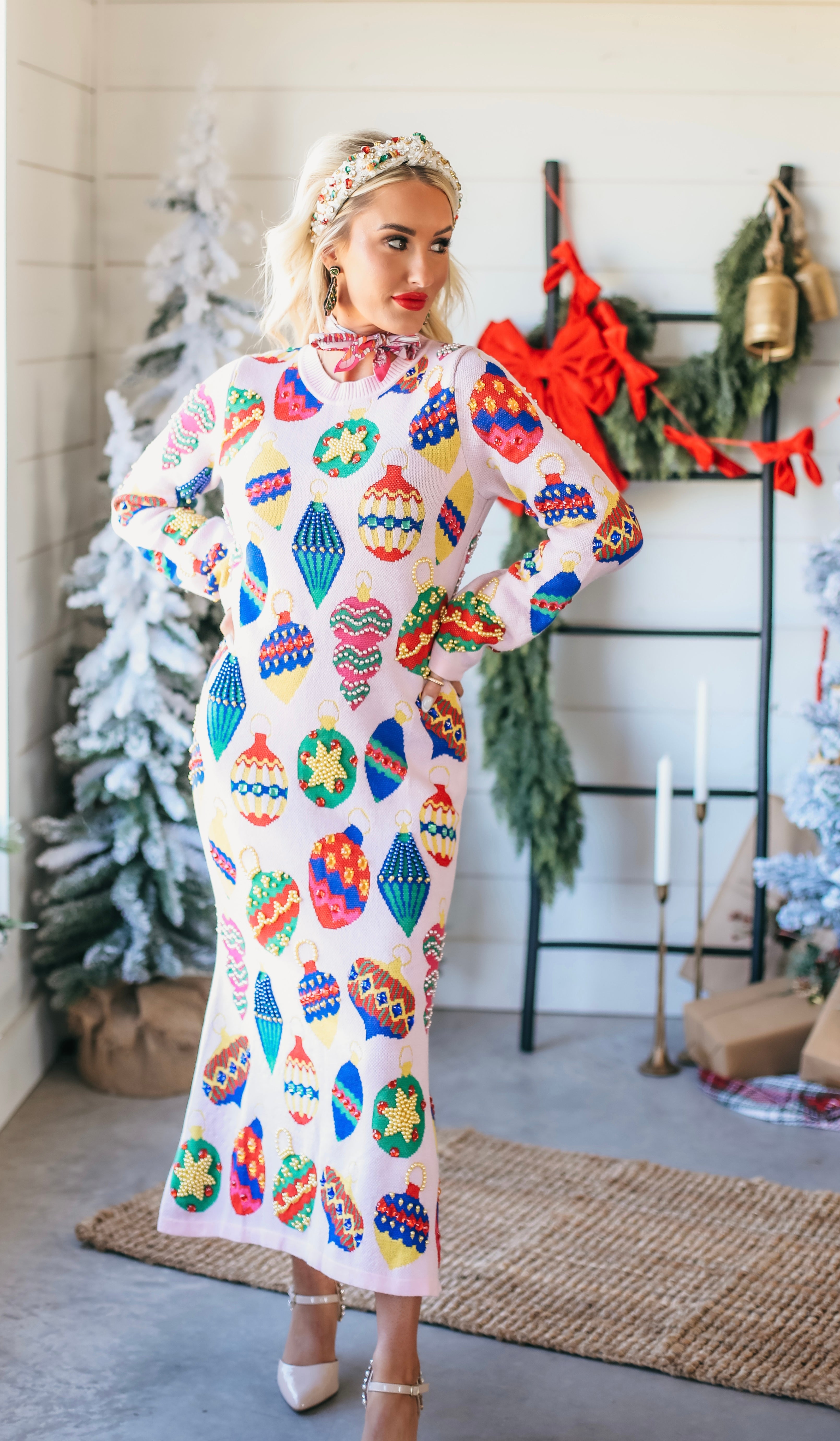 QUEEN OF SPARKLES MULTI JEWELED ORNAMENT KNIT MIDI DRESS