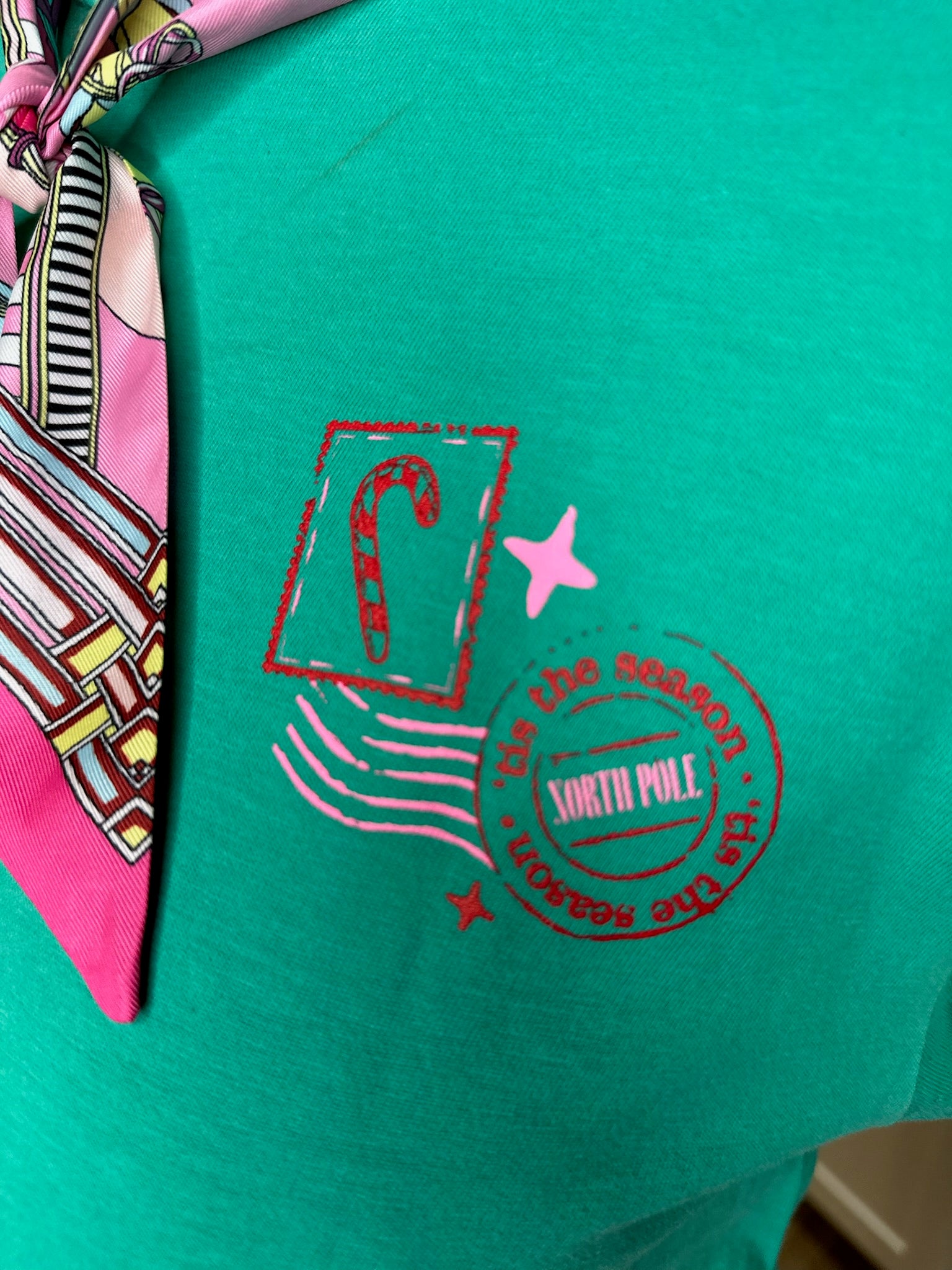 Meet your new holiday favorite. This teal Santa Stamp Tee brings festive charm with that lived-in Comfort Colors feel everyone loves. Soft, cozy, and easy to style, it layers effortlessly—dress it up with a shacket and boots or keep it casual with leggings and sneakers.