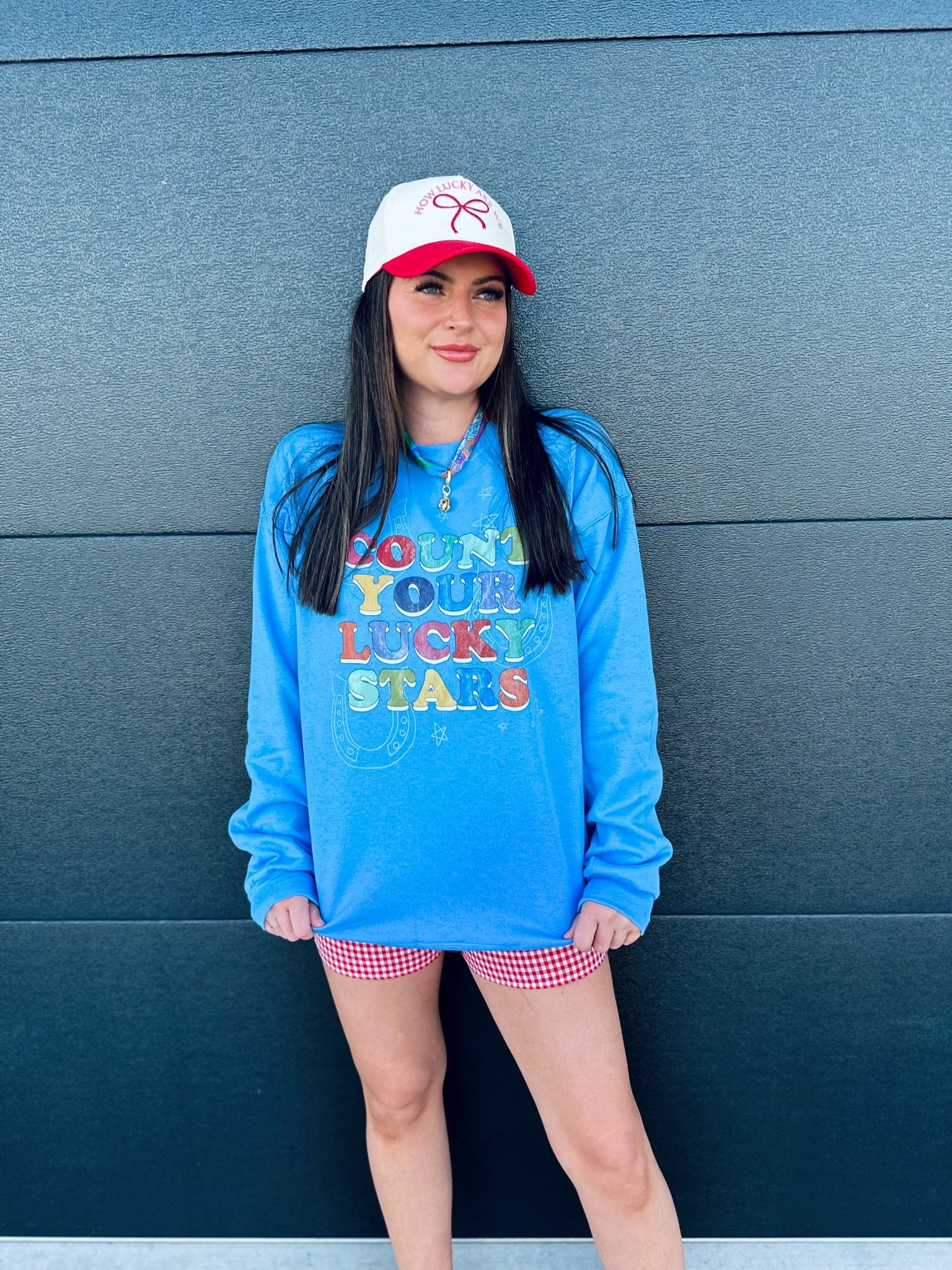 COUNT YOUR LUCKY STARS SWEATSHIRT- BLUE