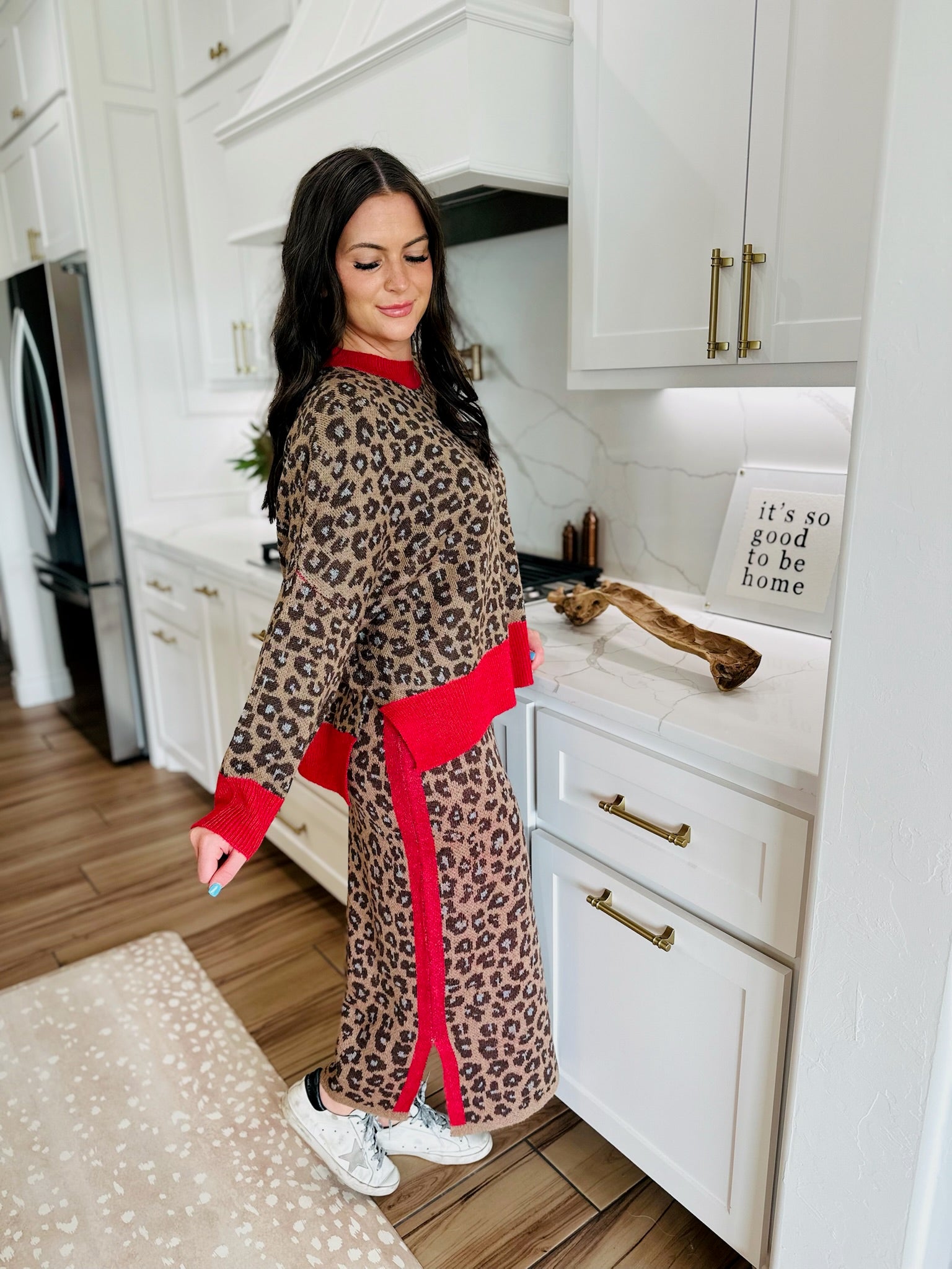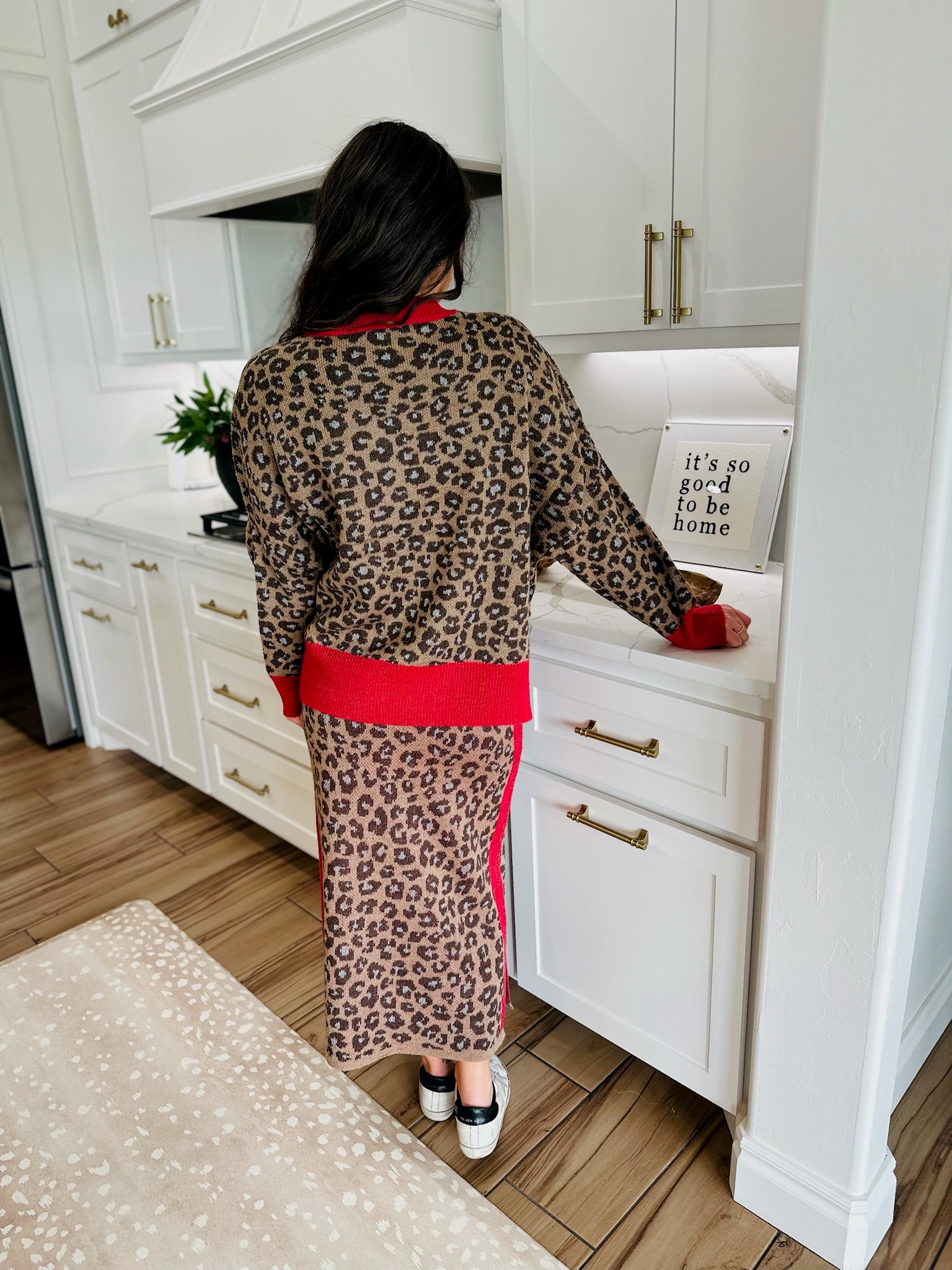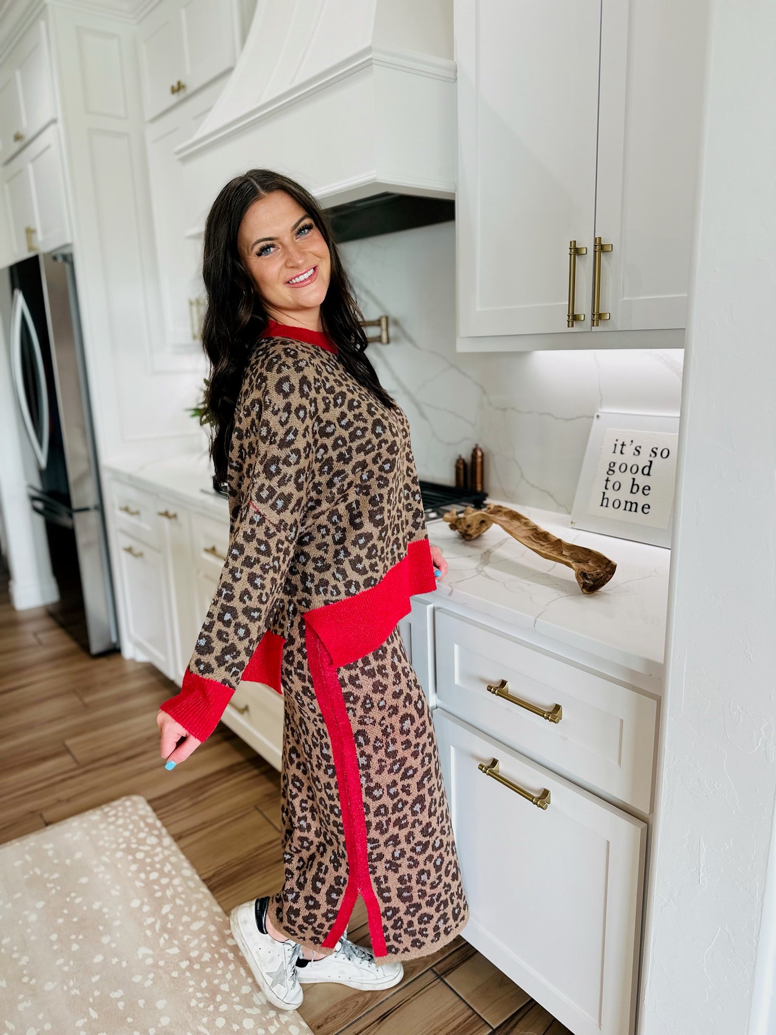 Turn heads this season with our bold Leopard Knit Sweater featuring striking red contrast detailing. Designed for comfort and statement style, this sweater blends a timeless animal print with modern edge, making it a must-have piece for your wardrobe.