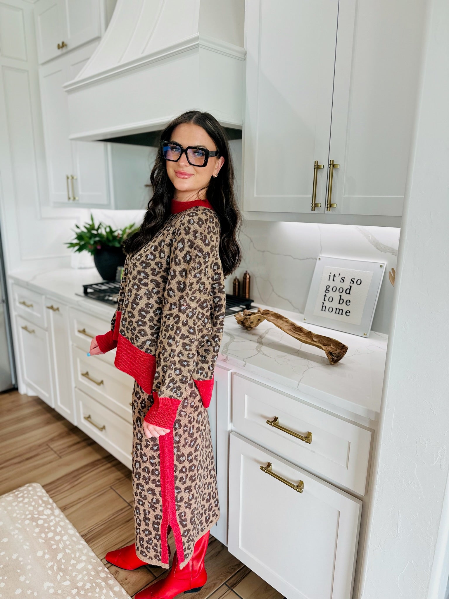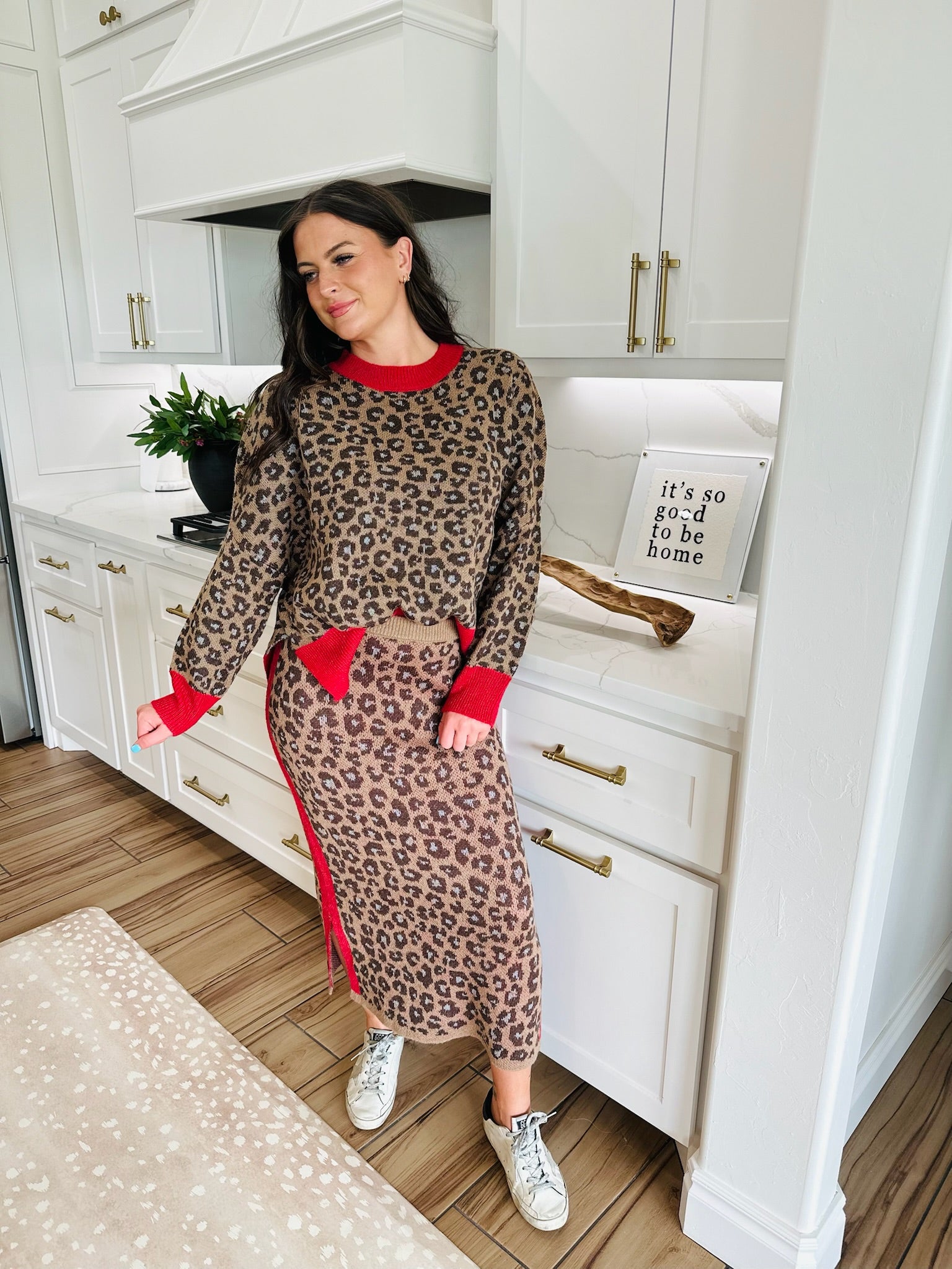 This sweater pairs effortlessly with high-rise denim, faux leather leggings, or tailored skirts. The leopard print brings timeless sophistication, while the bold red contrast ensures you stand out in any crowd. Perfect for everyday wear, holiday gatherings, or a night out.