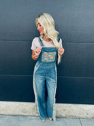 Elevate your fall wardrobe with our Women’s Floral Contrast Denim Overalls, designed for effortless style and comfort. Made from soft, breathable denim, these classic overalls feature a relaxed wide leg fit and unique floral contrast details that add a feminine twist to a timeless favorite.