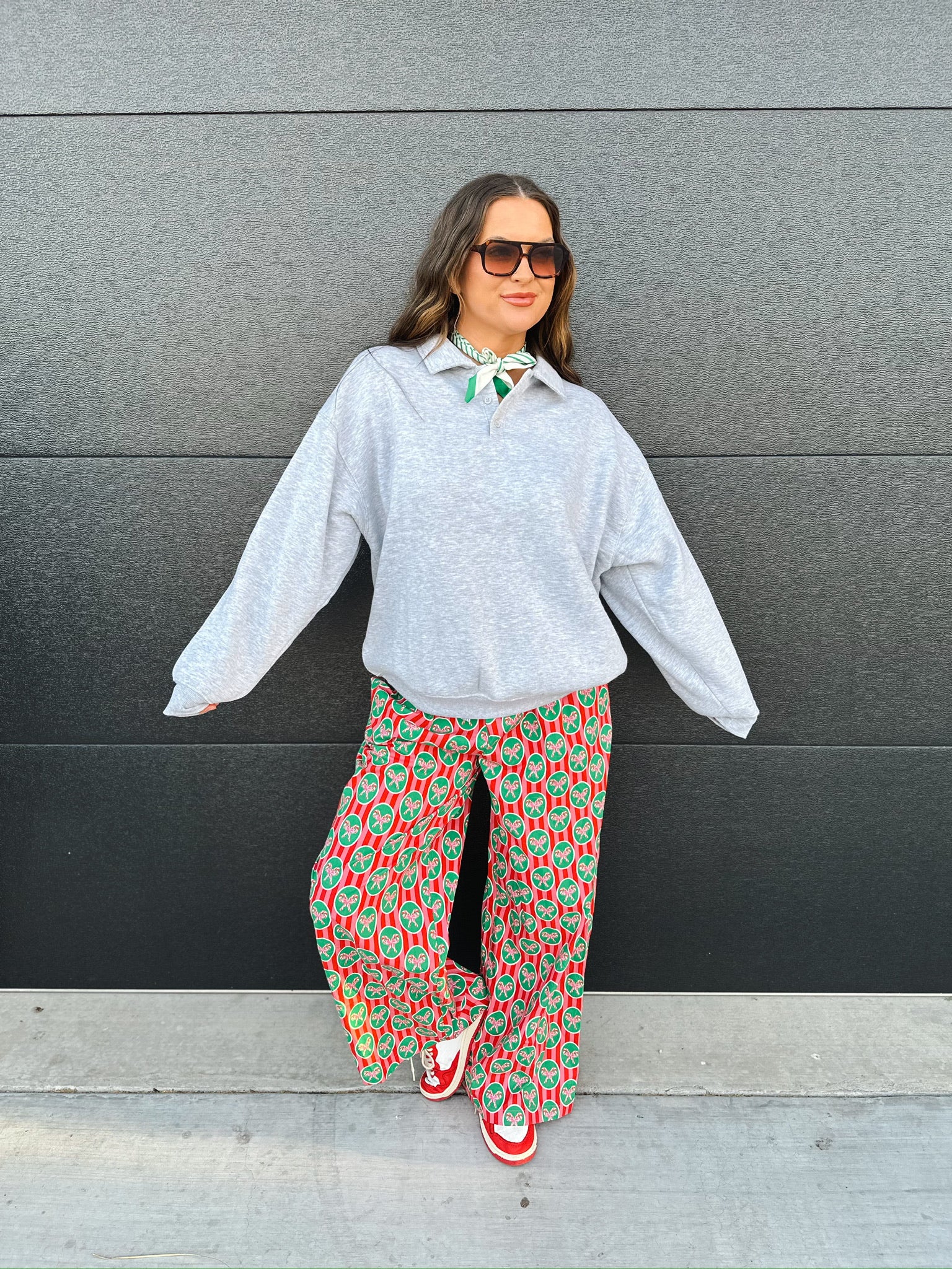 LIGHT GRAY COZY ELEGANCE POLO COLLAR PULLOVER