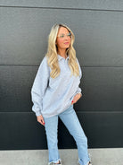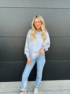 Ribbed cuffs add structure and a polished finish, while the versatile design makes layering effortless. Pair it with jeans, leggings, or under your favorite jacket for a classic, cozy look that transitions effortlessly through the seasons.
