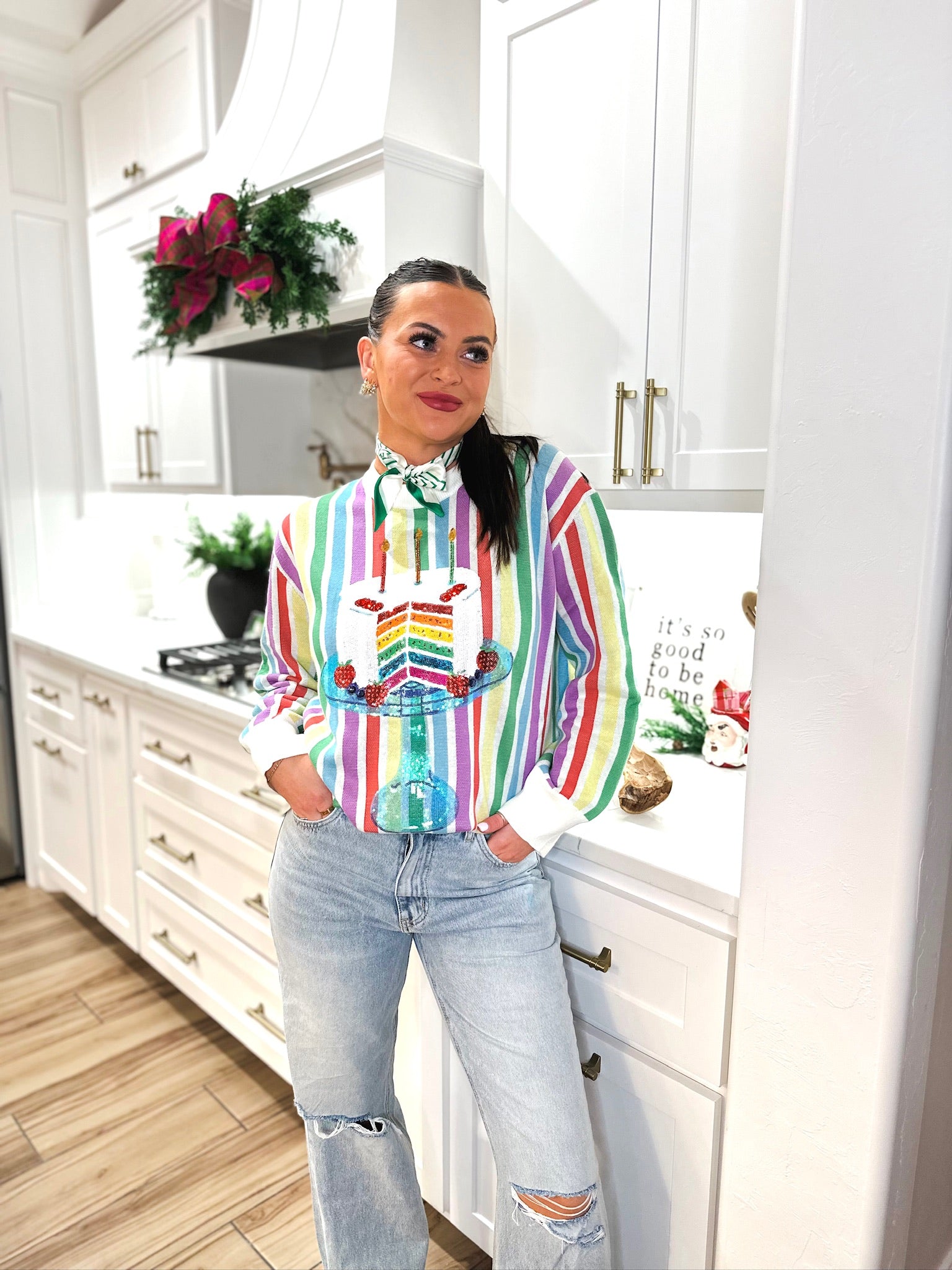 RAINBOW STRIPE BIRTHDAY SWEATER QUEEN OF SPARKLES