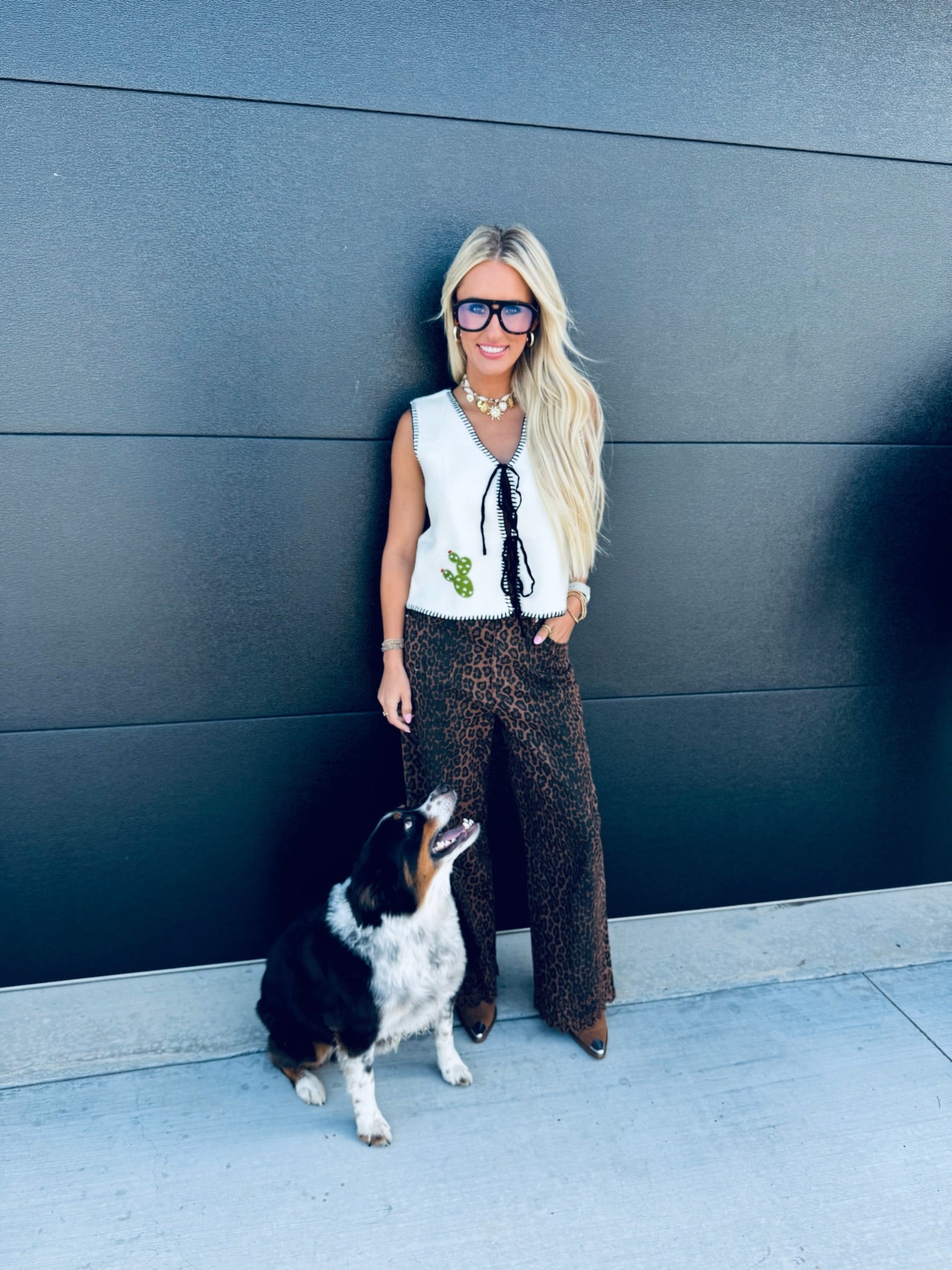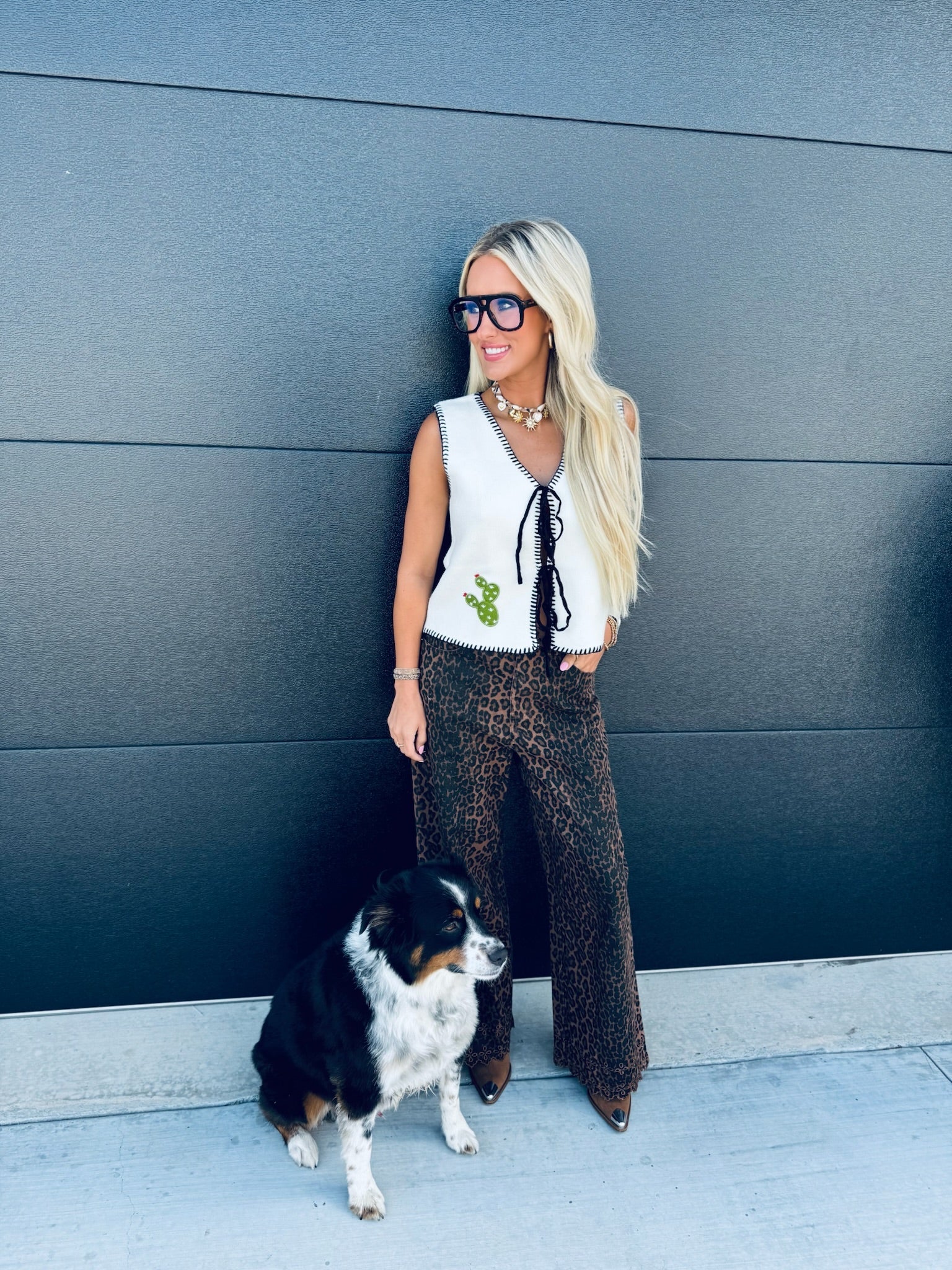 Bring a touch of the frontier to your look with this statement vest. Designed with bold western patchwork details and finished with a blanket stitch edge, it combines rustic charm with everyday versatility. Perfect for layering over a tee or button-down, this vest adds a modern western edge to any outfit.