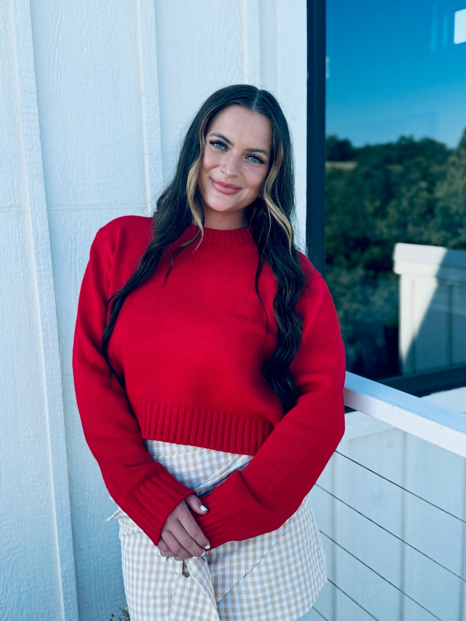 A cardinal red sweater is a bold, rich shade of red—slightly deeper and more intense than classic red, often with warm undertones. It’s a statement piece that can work in both casual and dressy outfits.