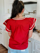 Add a pop of color to your everyday style with this charming V-neck top by ENTRO. Featuring flutter sleeves and multicolor embroidered appliqué detailing, it blends effortless comfort with elevated design.