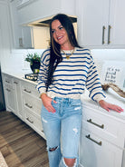 Perfect for fall transition outfits, this versatile sweater pairs effortlessly with denim, skirts, or layered over a collared shirt. Model is wearing a size medium.