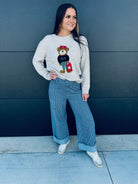 ENTRO OATMEAL USA TEDDY BEAR KNIT SWEATER
