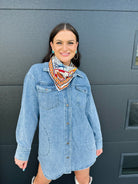 Pair with white sneakers and leggings for a weekend look, or throw over a fitted dress with boots for an elevated vibe. This shacket’s light wash makes it an easy match with neutrals, brights, or patterns.