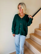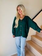Hunter Green Waffle Cardigan – Versatile, Cozy, and Chic
