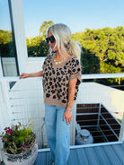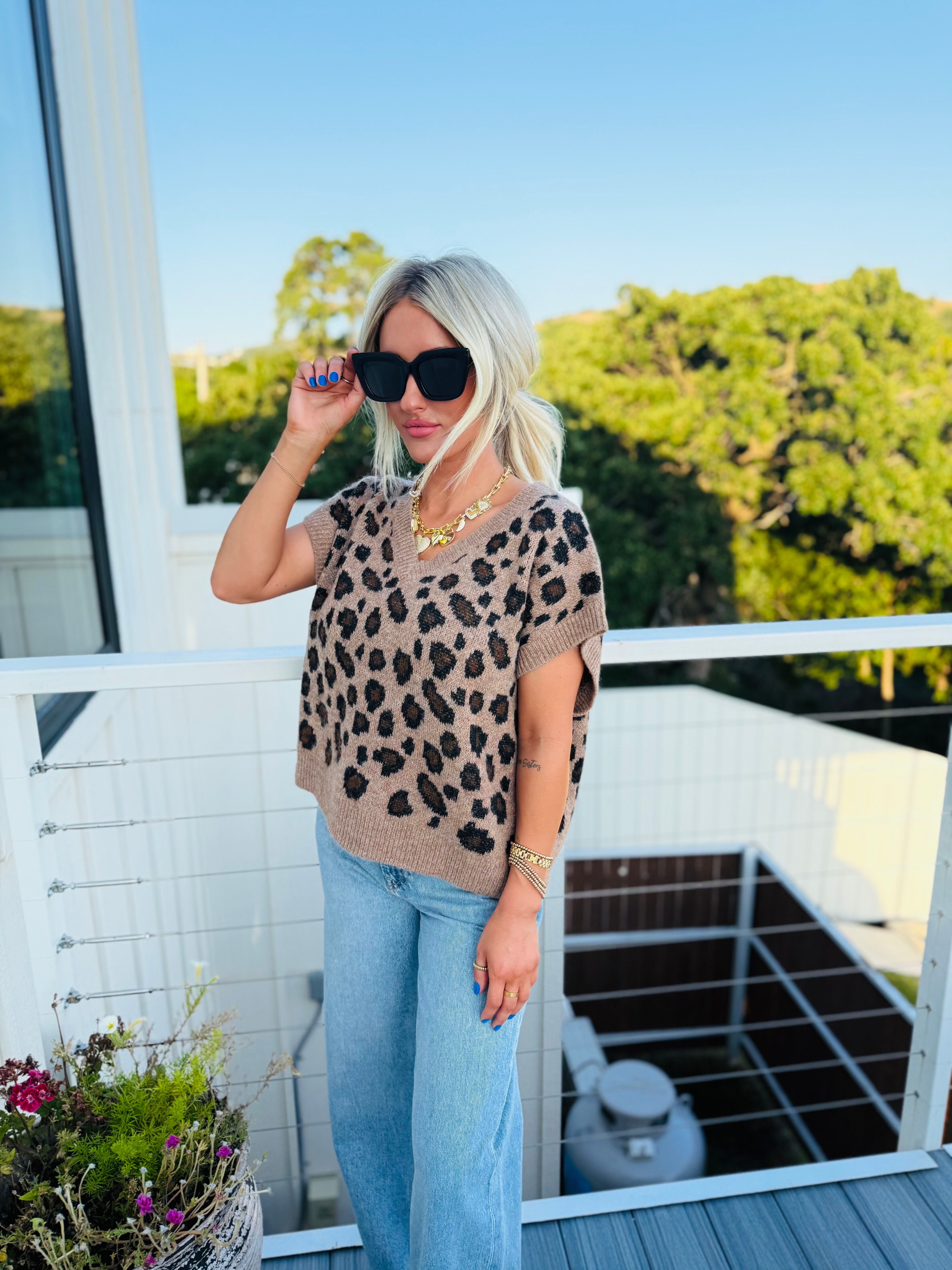 MOCHA OVERSIZED VNECK LEOPARD SWEATER VEST