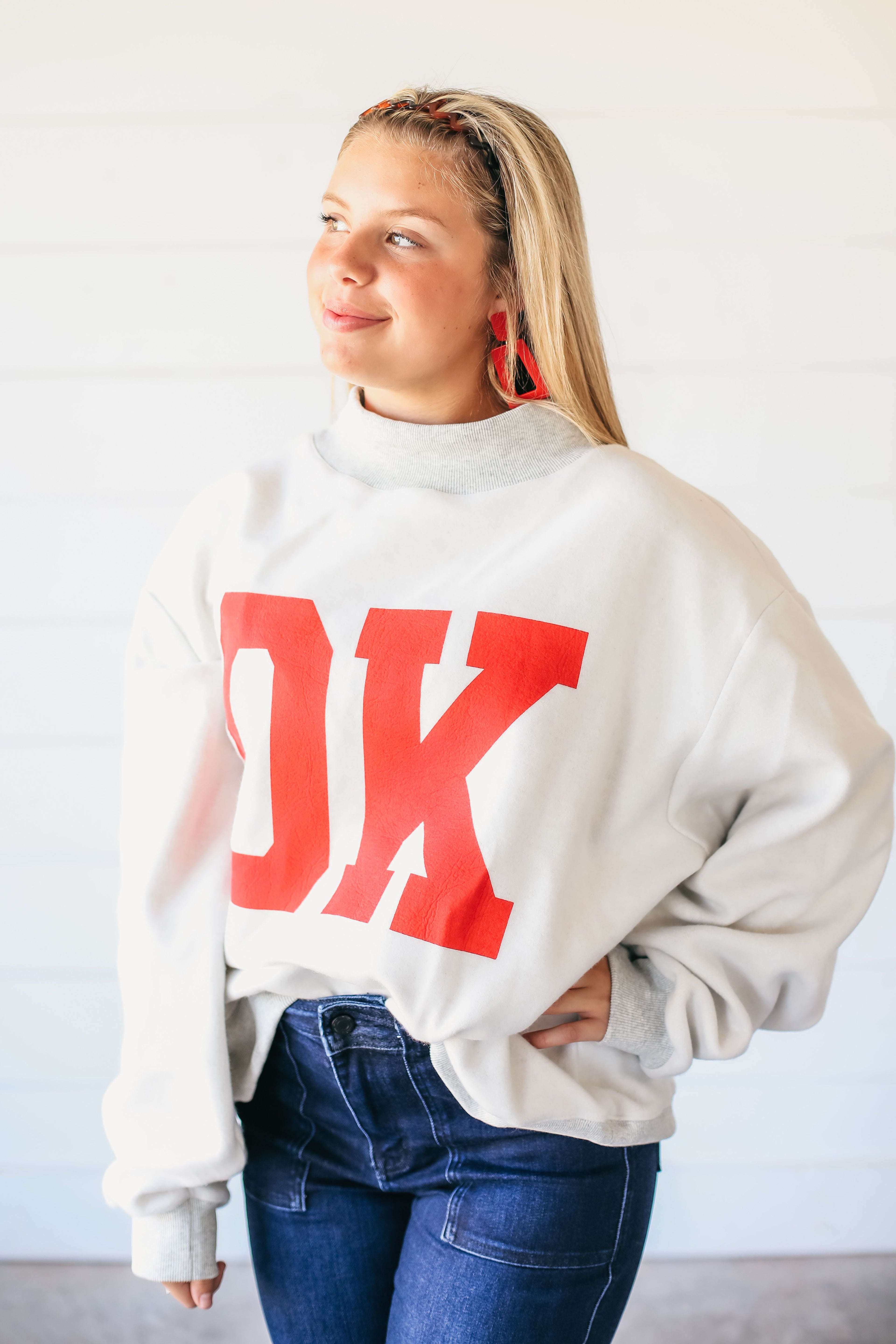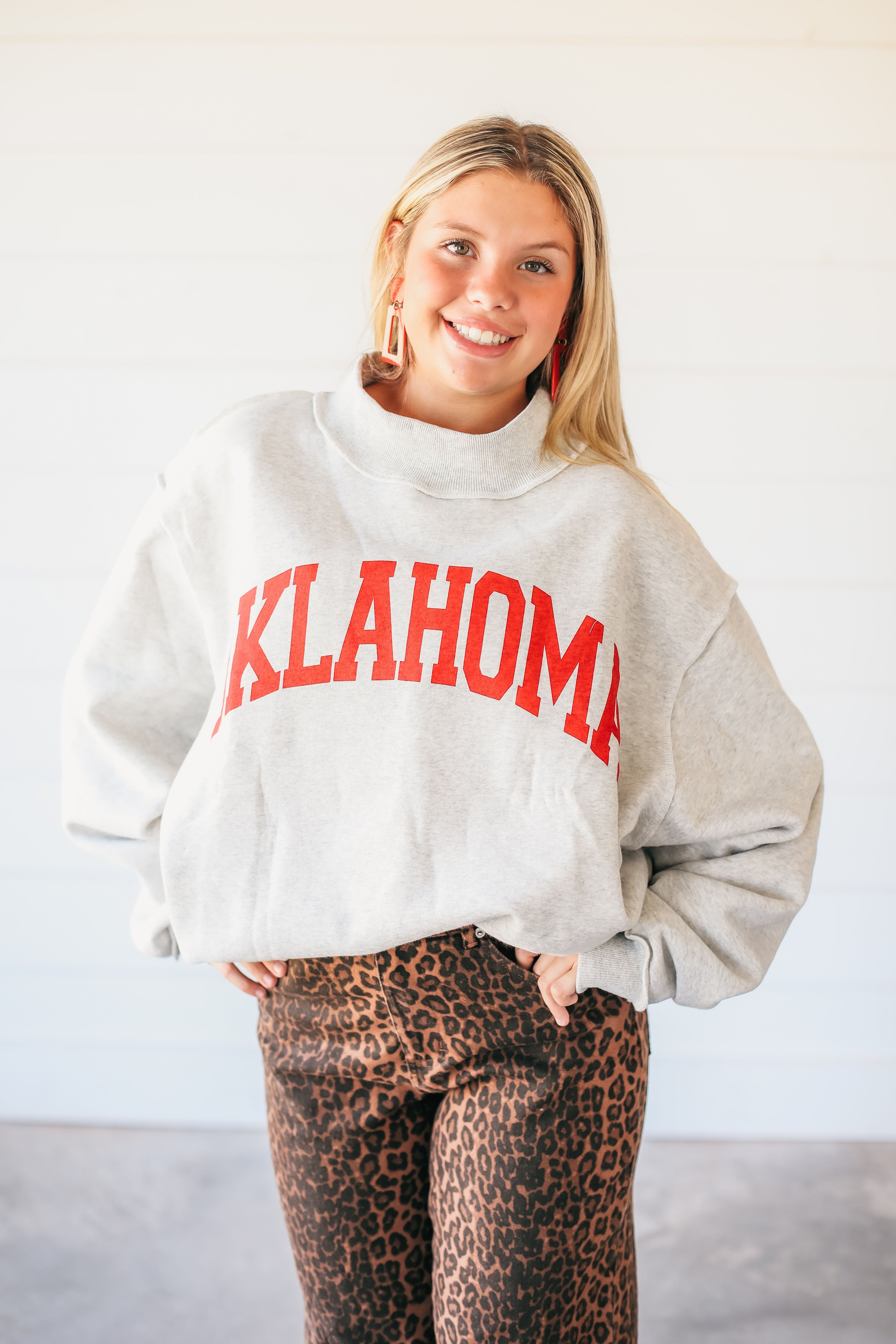 OKLAHOMA & OK Reversible Mock Neck Sweatshirt – Oversized Cozy Fleece