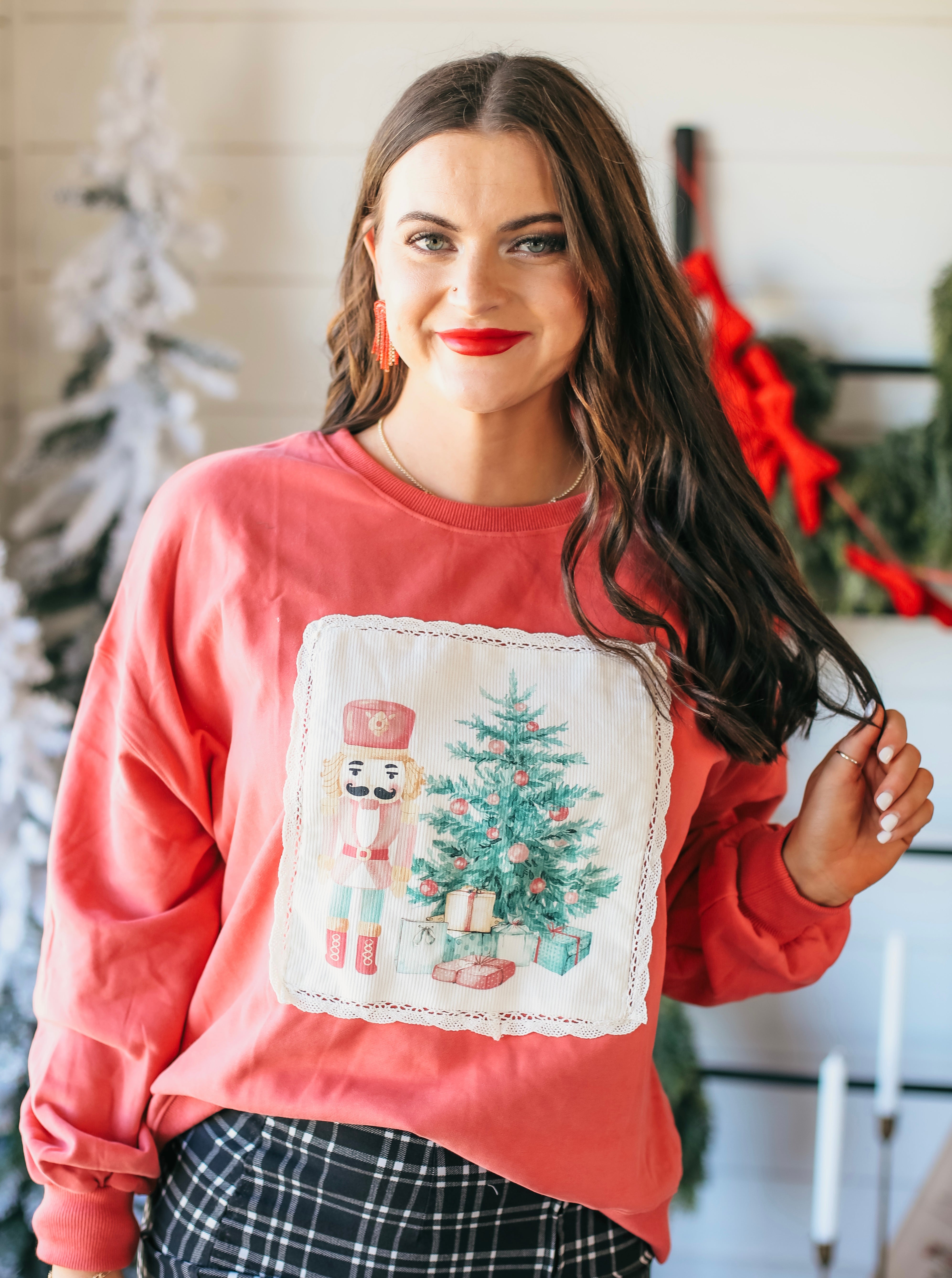 PEACH LOVE CHRISTMAS NUTCRACKER LONG SLEEVE TOP WITH LACE DETAILS
