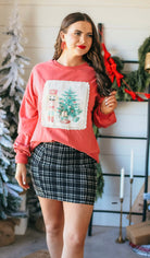 Bring classic holiday charm to your winter wardrobe with our Peach Love Dark Coal Christmas Printed Corduroy Patch Top. This stunning piece features intricate Nutcracker print accents and scalloped lace detailing that add a feminine, festive touch. The soft dark coal base offers a rich contrast to the cheerful Christmas pattern, creating a look that’s both cozy and sophisticated.