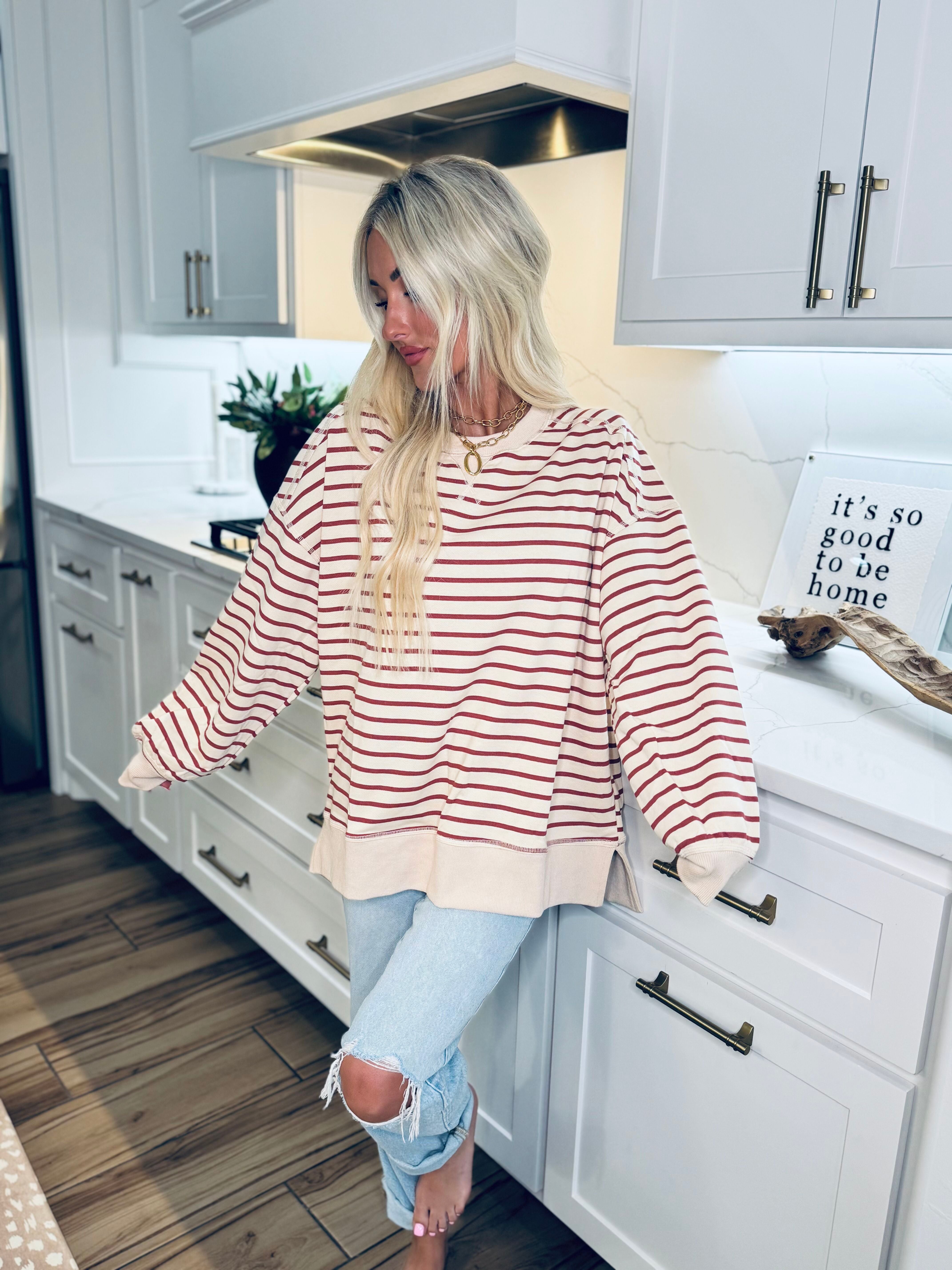 STRIPE COMFY CASUAL OVERSIZED KNIT TOP