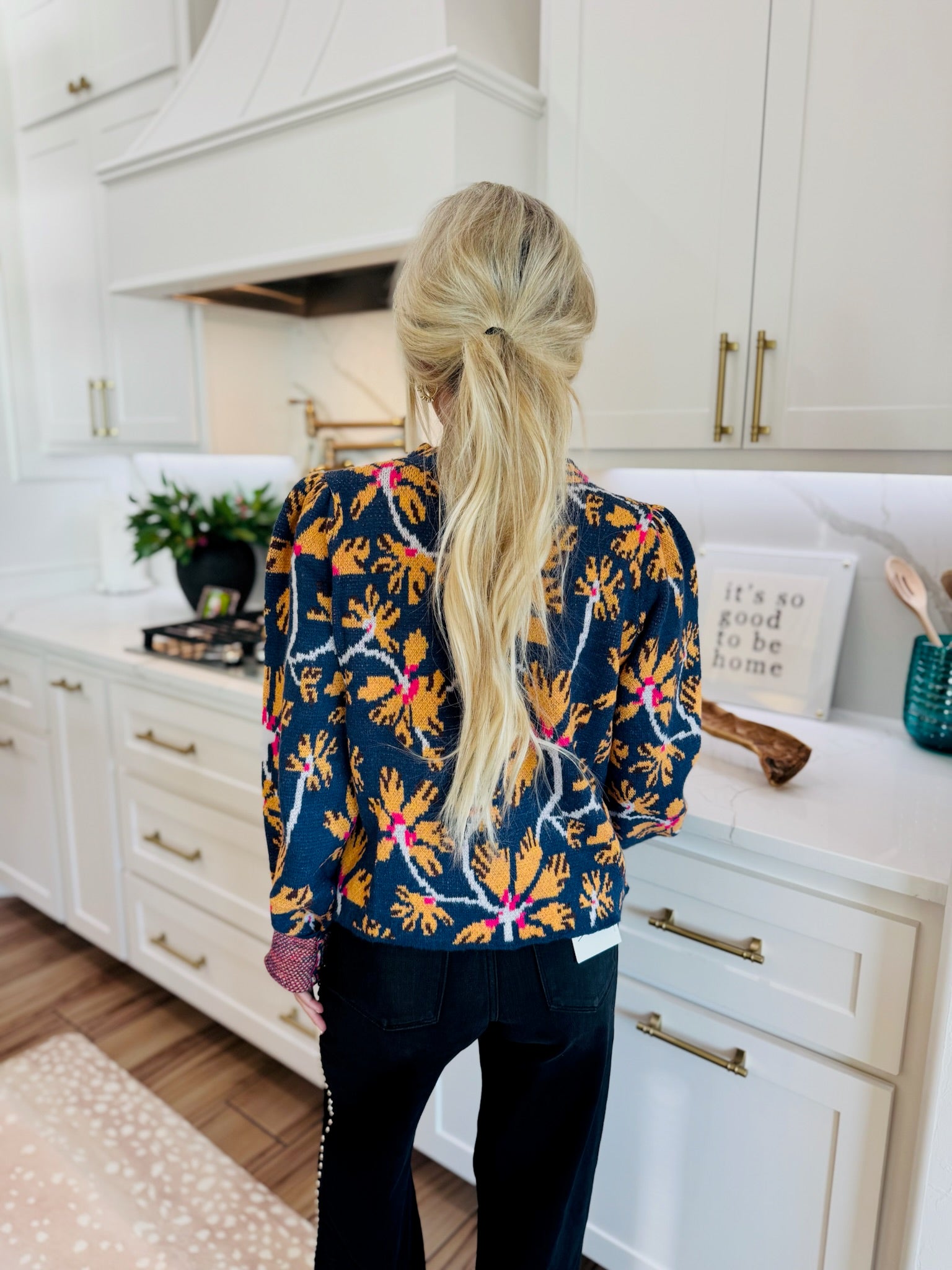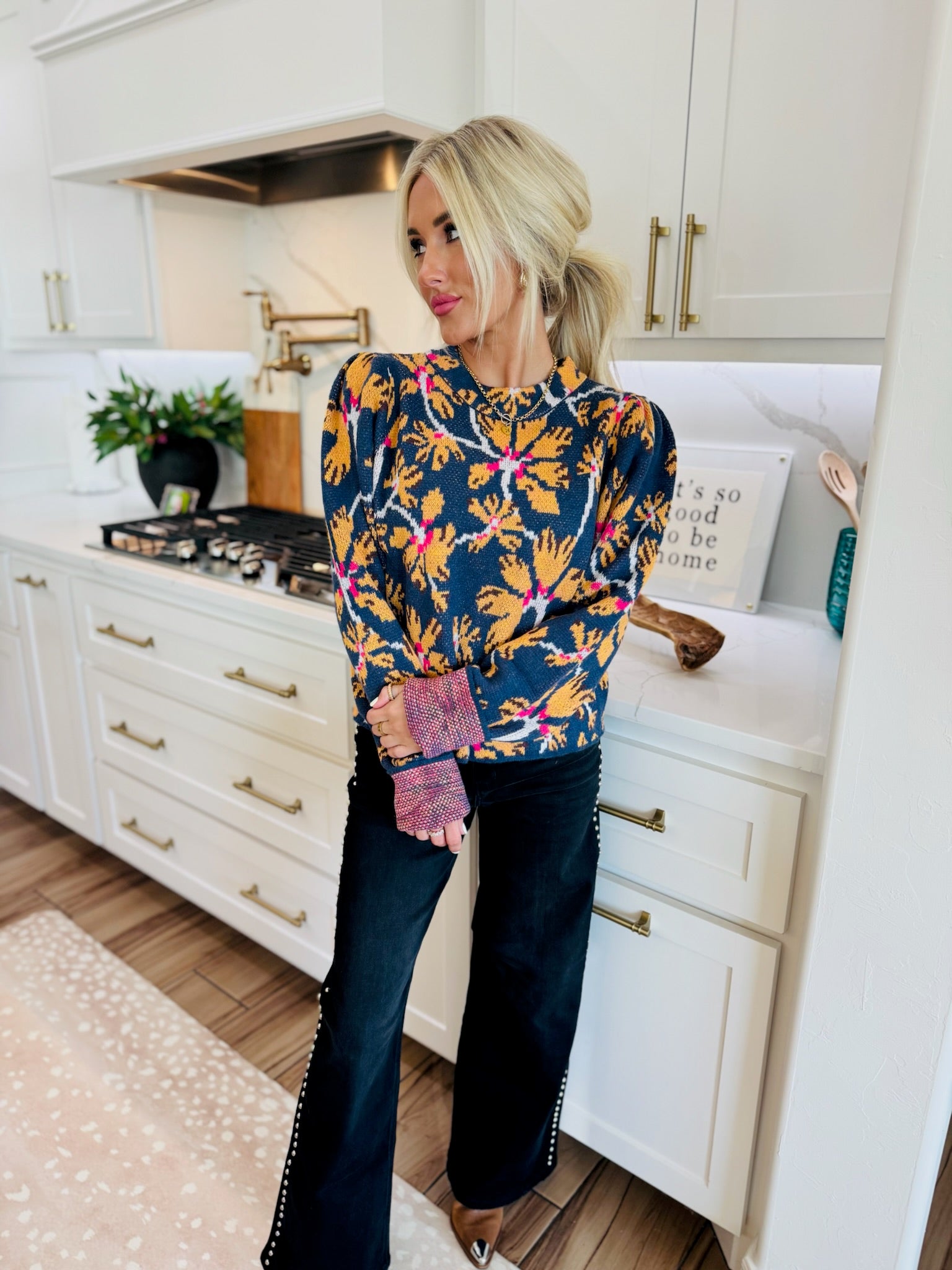 &MERCI NAVY FLORAL MULTI COLOR SWEATER